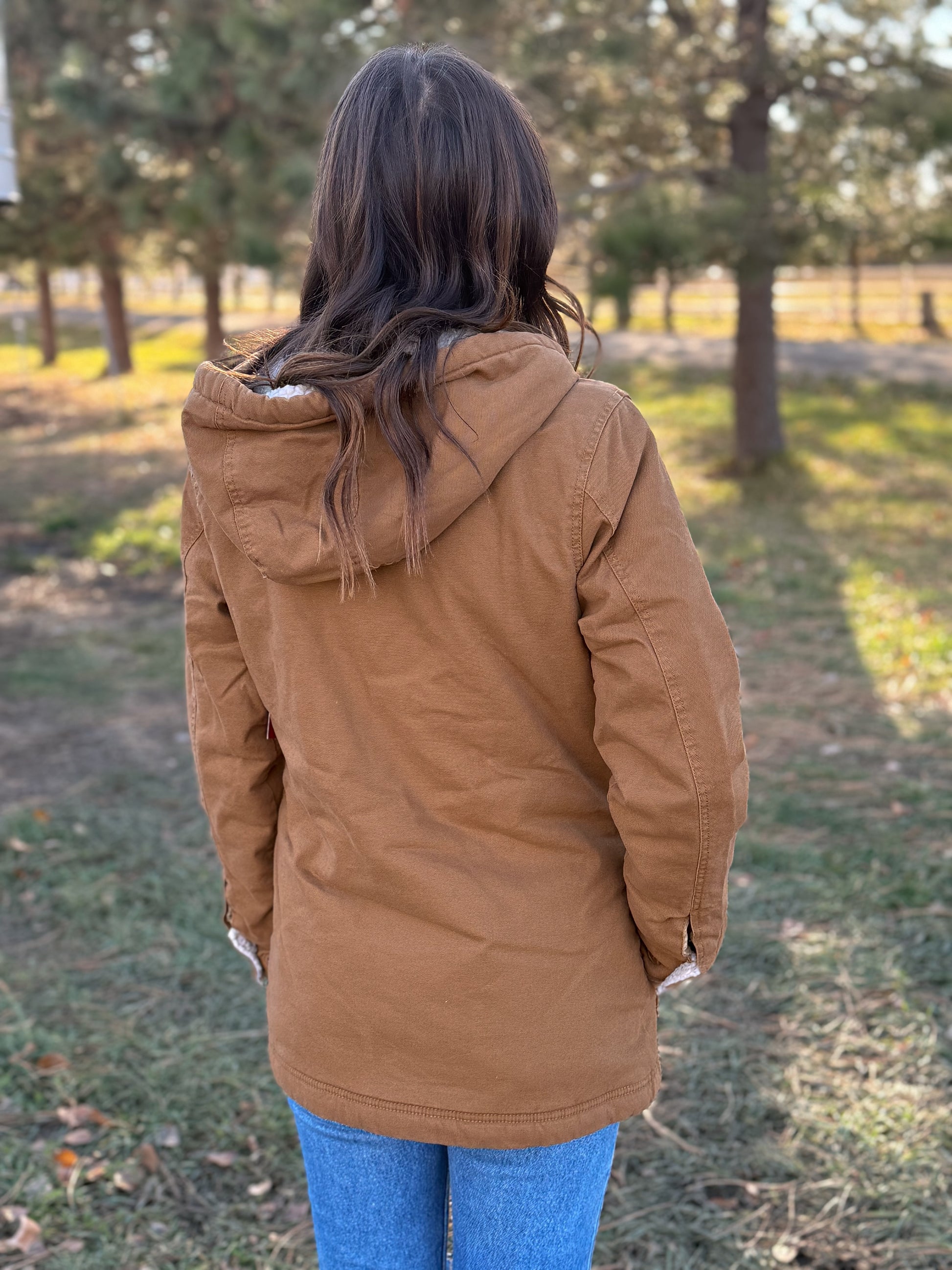 Details: Long Sleeve, Zip Front, Canvas Anorak, Sherpa Lined Body and Hood, Sleeves Lined in Quilted Lining Fabric, Welted Hand Pockets and 2-Way Lower Patch Pockets. Adjustable Drawstrings at Hem and Hood